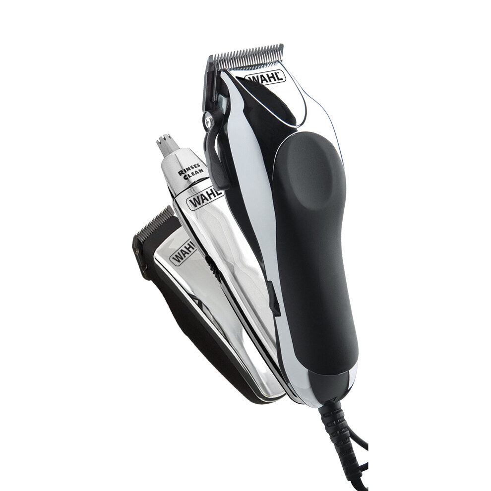 Wahl Chrome Pro Deluxe Mains Clipper, Trimmer and Nasal Trimmer Chrome Gift Set
