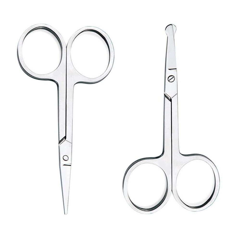 nuosen 2 pcs Facial Hair Scissors Set, Stainless Steel Nose Scissors Beard Moustache Eyelash Eyebrow Trimmer for Men Women