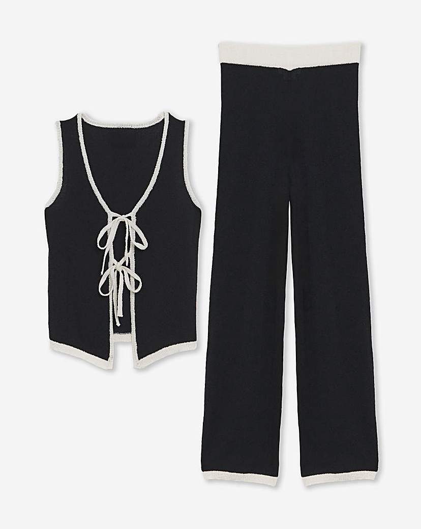 Boohoo Womens Super Soft Rib Knitted Waistcoat and Wide Leg Trouser Co-Ord - Black - Size Medium