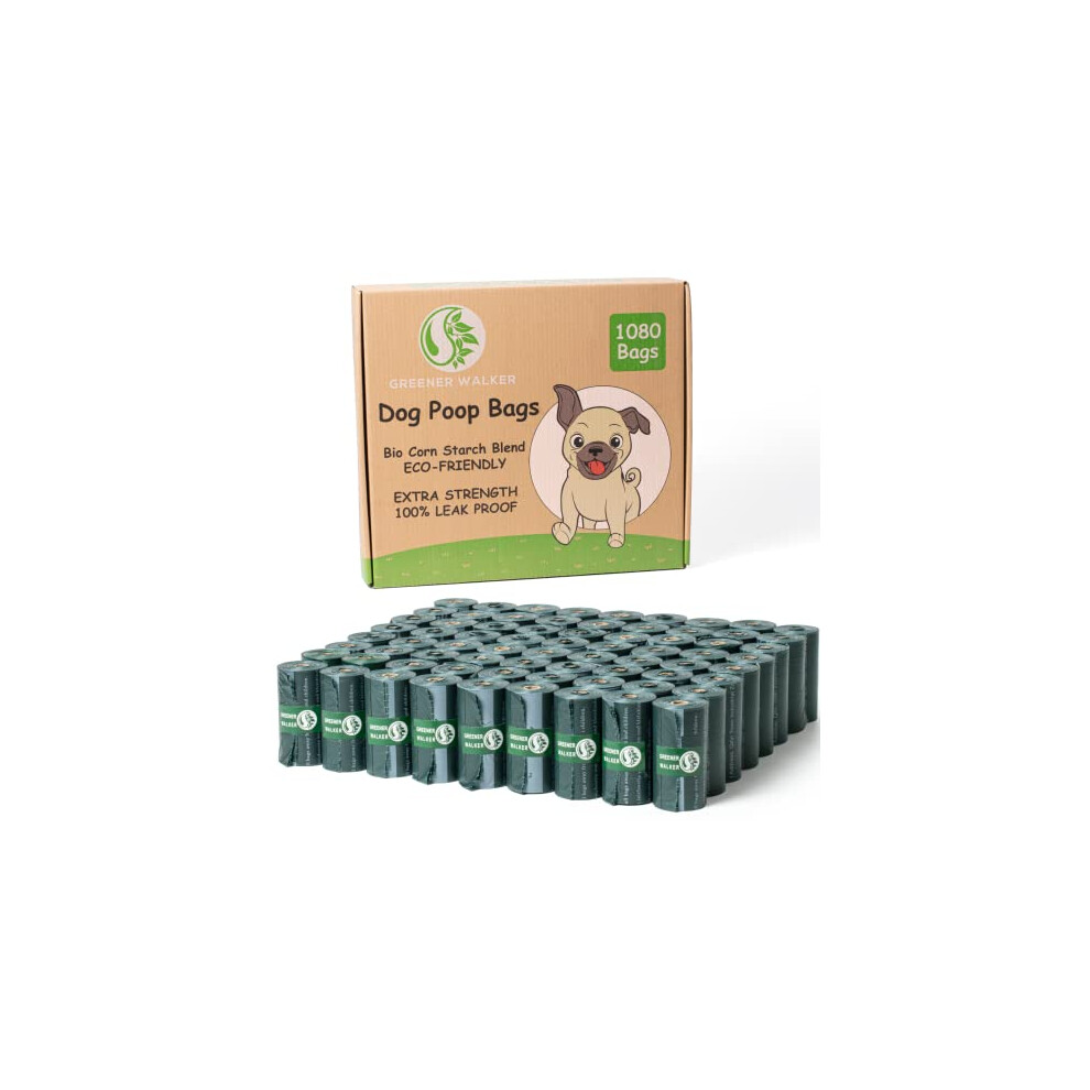 GREENER WALKER Poop Bags for Dog Waste-1080 Bags,Extra Thick Strong 100% Leak Proof Biodegradable Dog Waste Bags (Deep Green)
