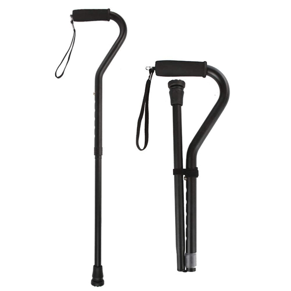 Walkers for Seniors Folding Canes Walking Stick, Adjustable Aluminum Height, Portable Non-Slip Curved Handle, Black Mobility Aid
