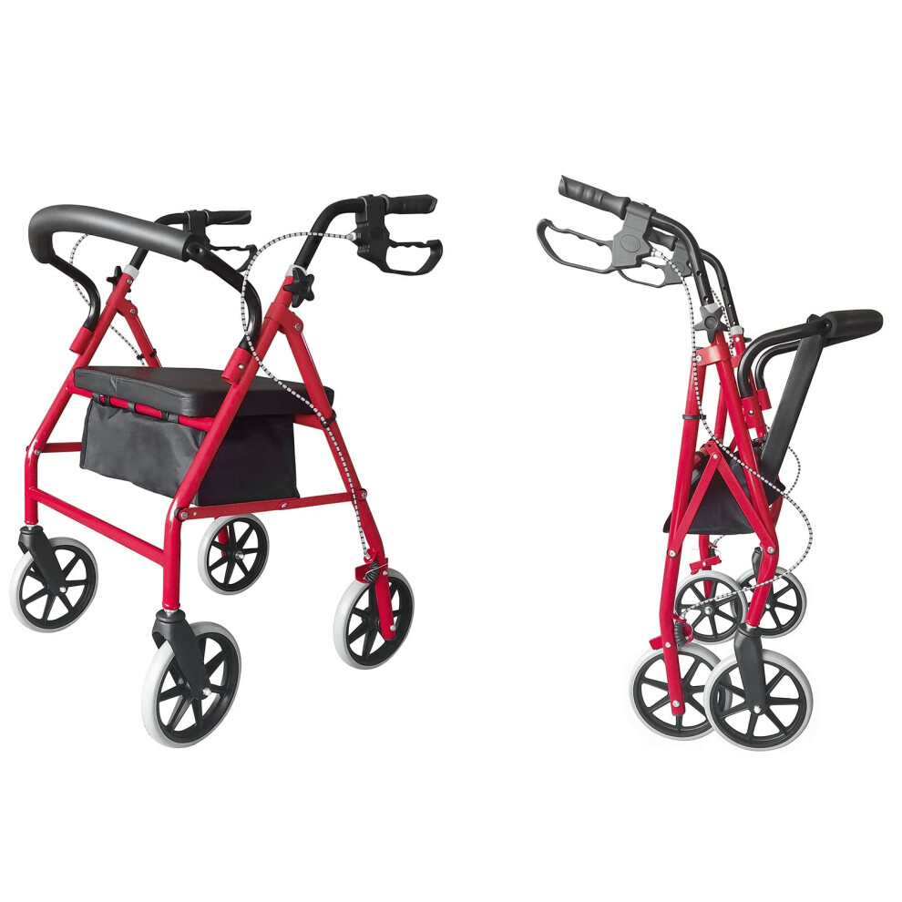 HOMLAND Foldable Rollator Walkers with Seat for Seniors, 8'' Big Wheels, 350 lb. Weight Capacity, Adjustable Handles and Seat Height, Lightweight Rolling Walker, Red