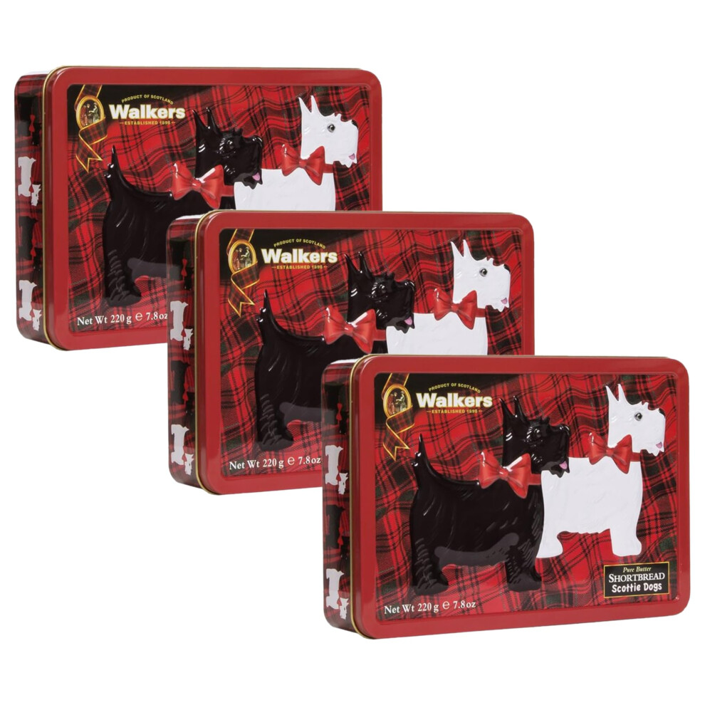 Walkers Shortbread Rocking Scottie Keepsake Tin, 220g (Pack of 3)