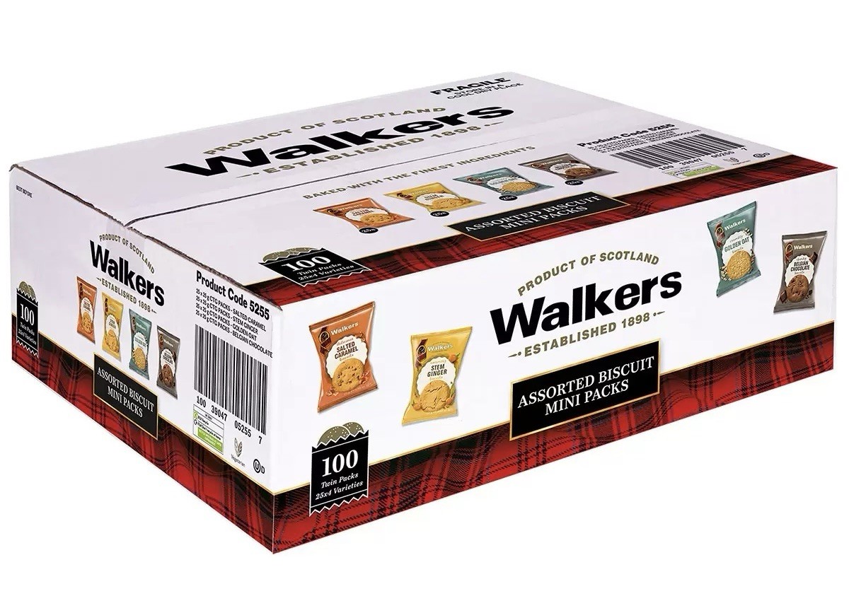 Walkers Shortbread Catering Assorted Biscuit Twin Packs, Golden Oat, Belgian Chocolate, Salted Caramel & Stem Ginger Biscuits (100 x 25g)