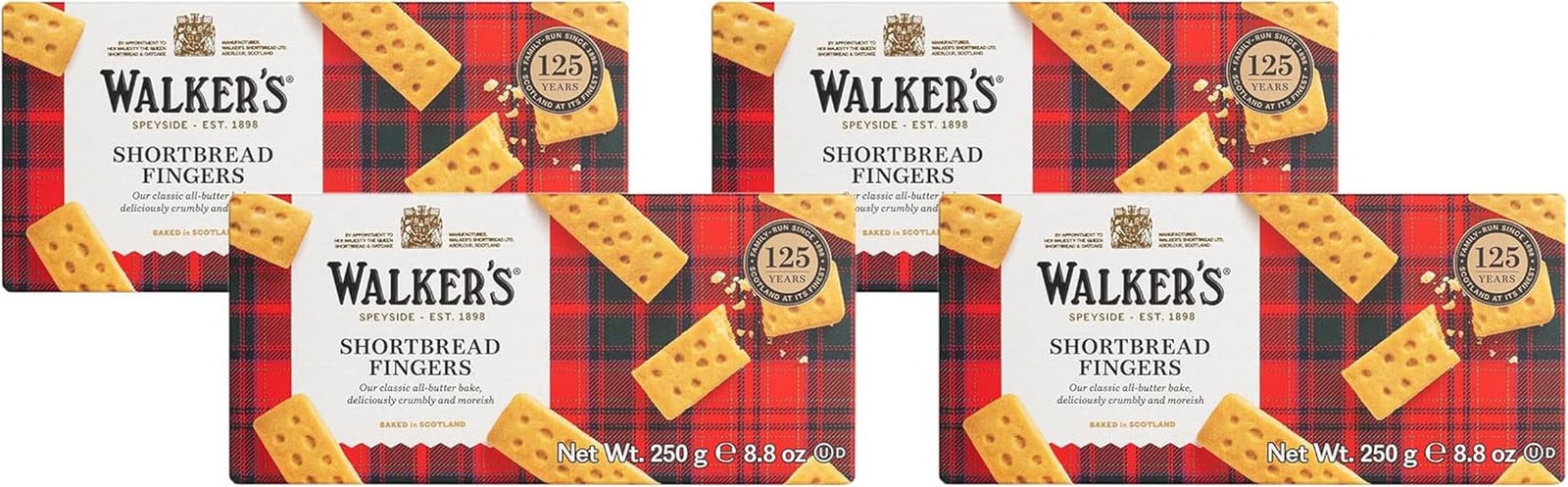 Walkers Pure Butter Shortbread Fingers, 250g (Pack of 4)