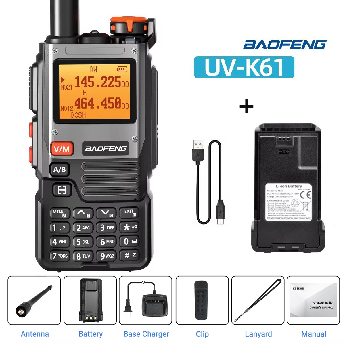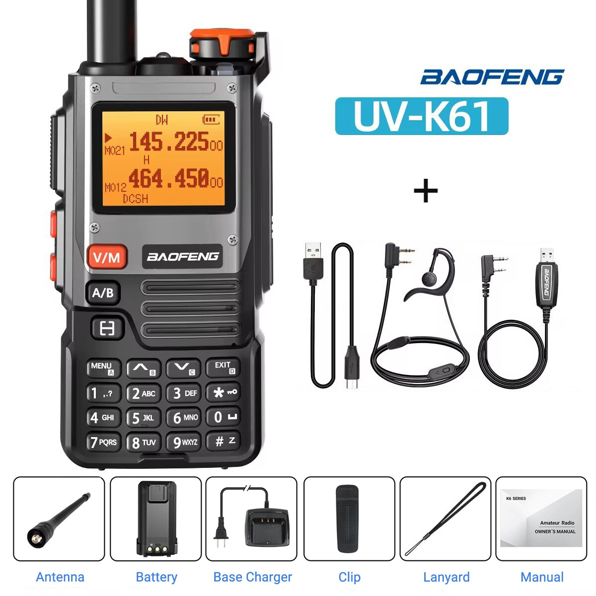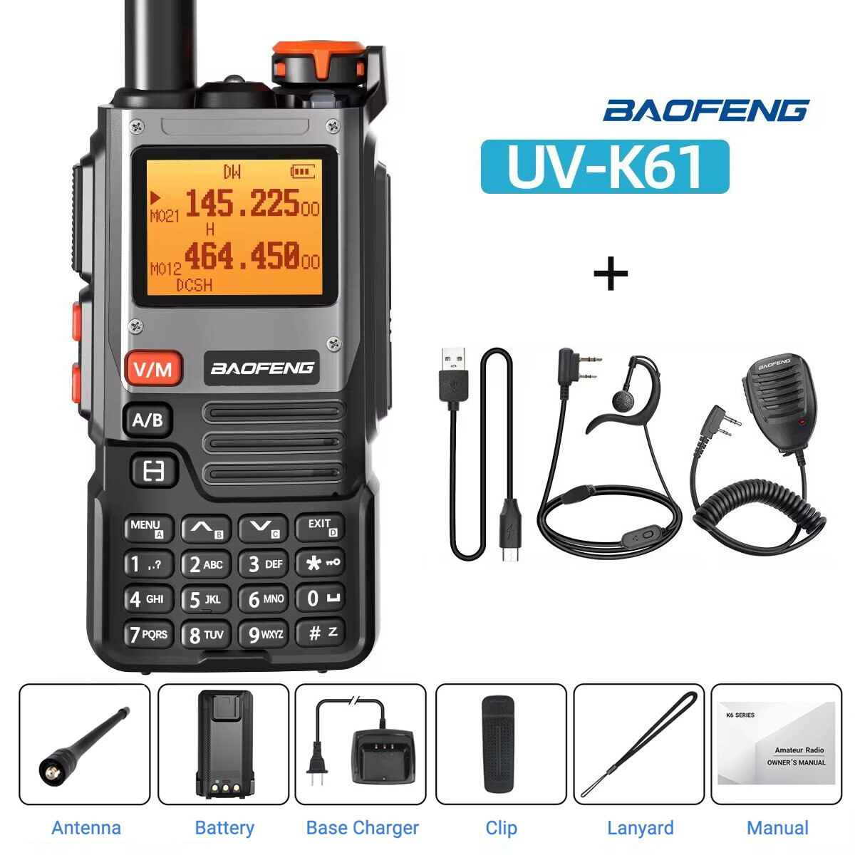 Baofeng UV-K61 Multi Band Walkie Talkie Type-C Long Range NOAA Ham Two Way Radio