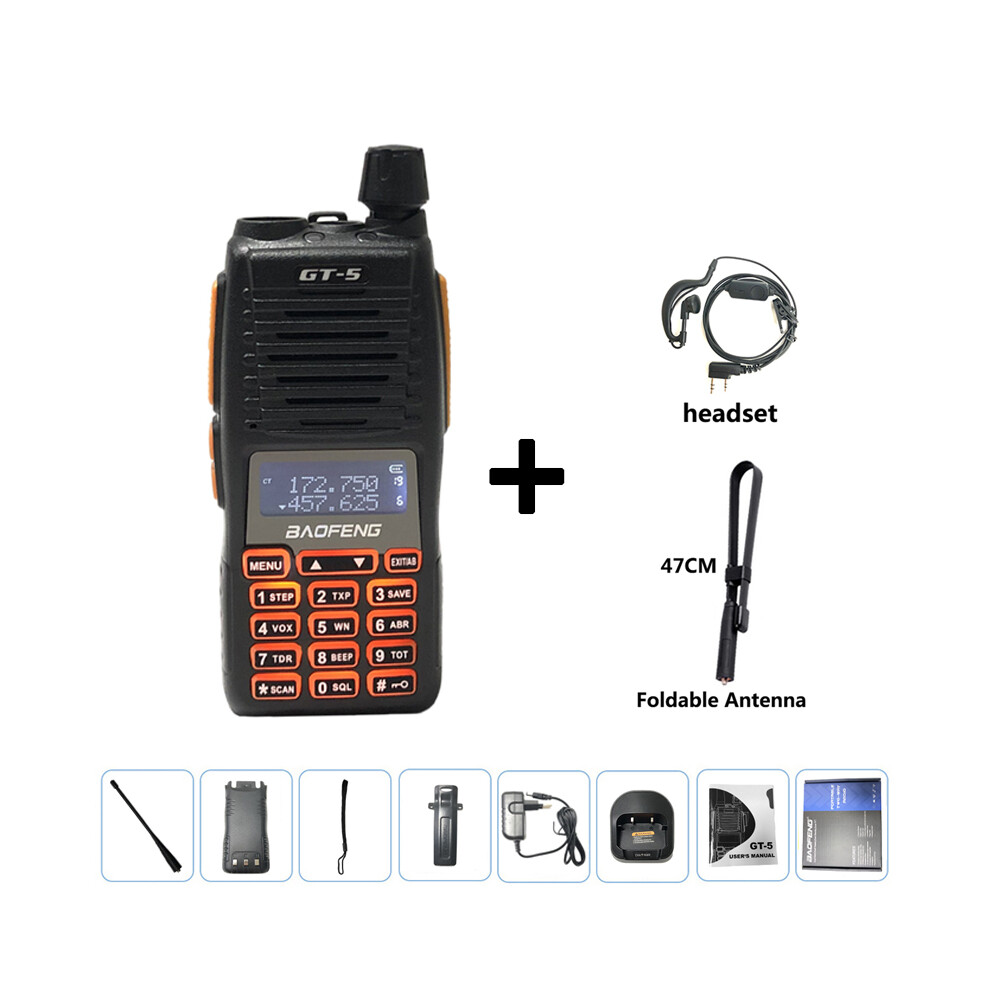 (Headset-Antenna) 2021 BF GT-5 Walkie Talkie Long Range 10 KM Two Way Ham Radio Dual PTT hf Transceiver Portable Radios