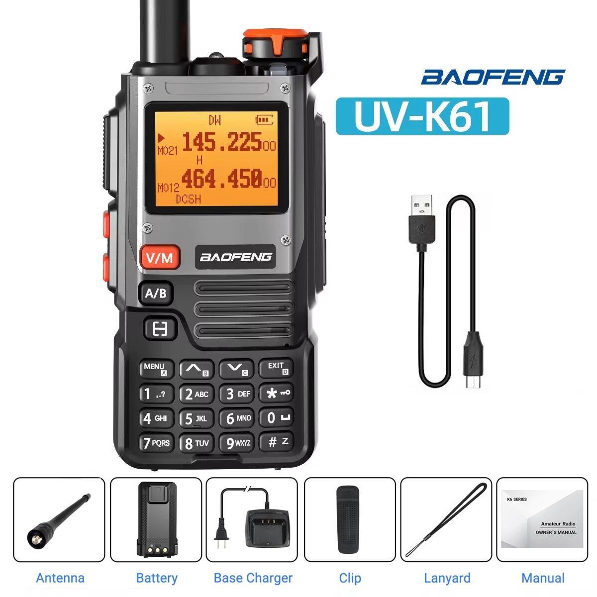 Baofeng UV-K61 Walkie Talkie Multi Band Long Range Type-C VHF UHF NOAA Ham Radio