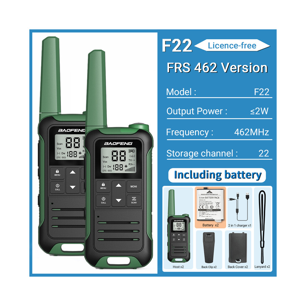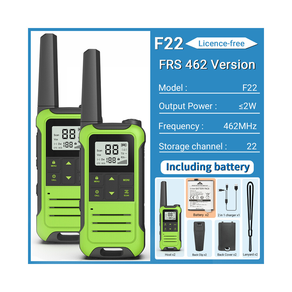(FRS Add BAT-GR) 2PCS F22 Walkie Talkie PMR FRS Long Range Mini Rechargable Type-C Charger Portable Two Way Radio For