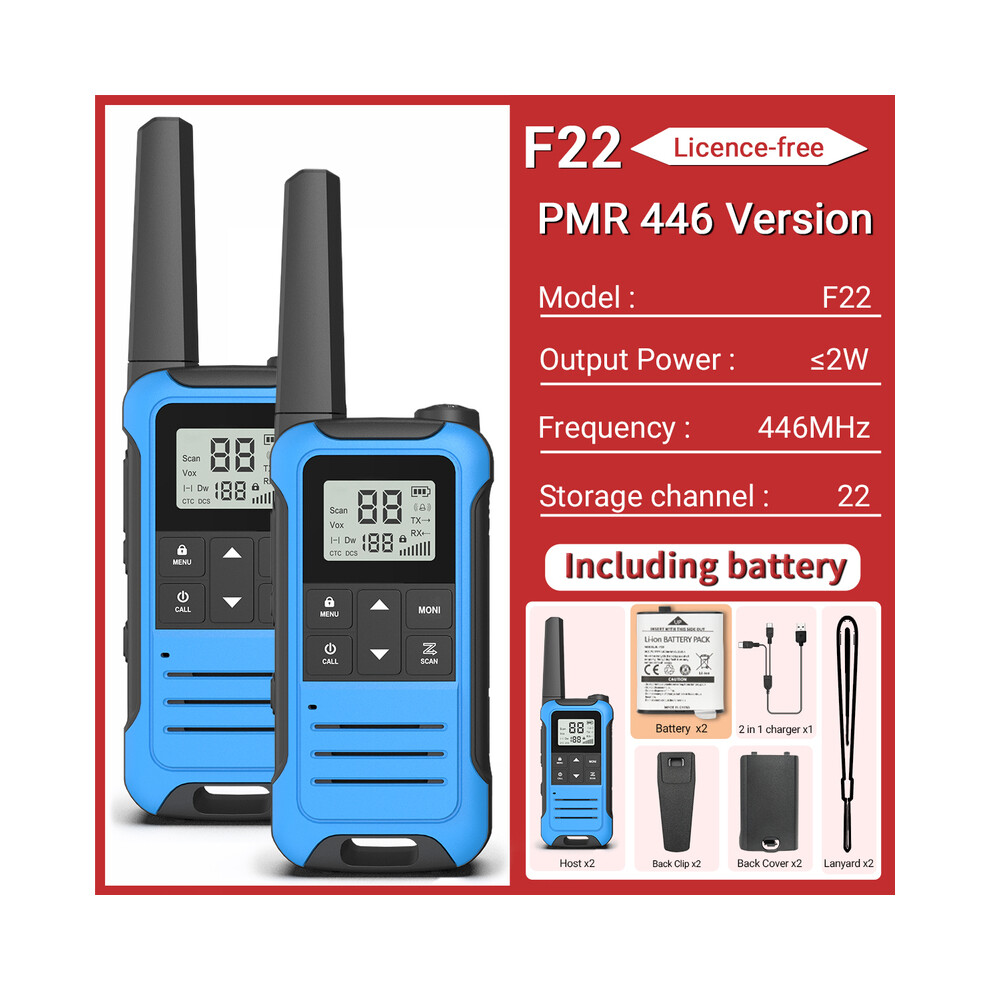(PMR Add BAT-BL) 2PCS F22 Walkie Talkie PMR FRS Long Range Mini Rechargable Type-C Charger Portable Two Way Radio For