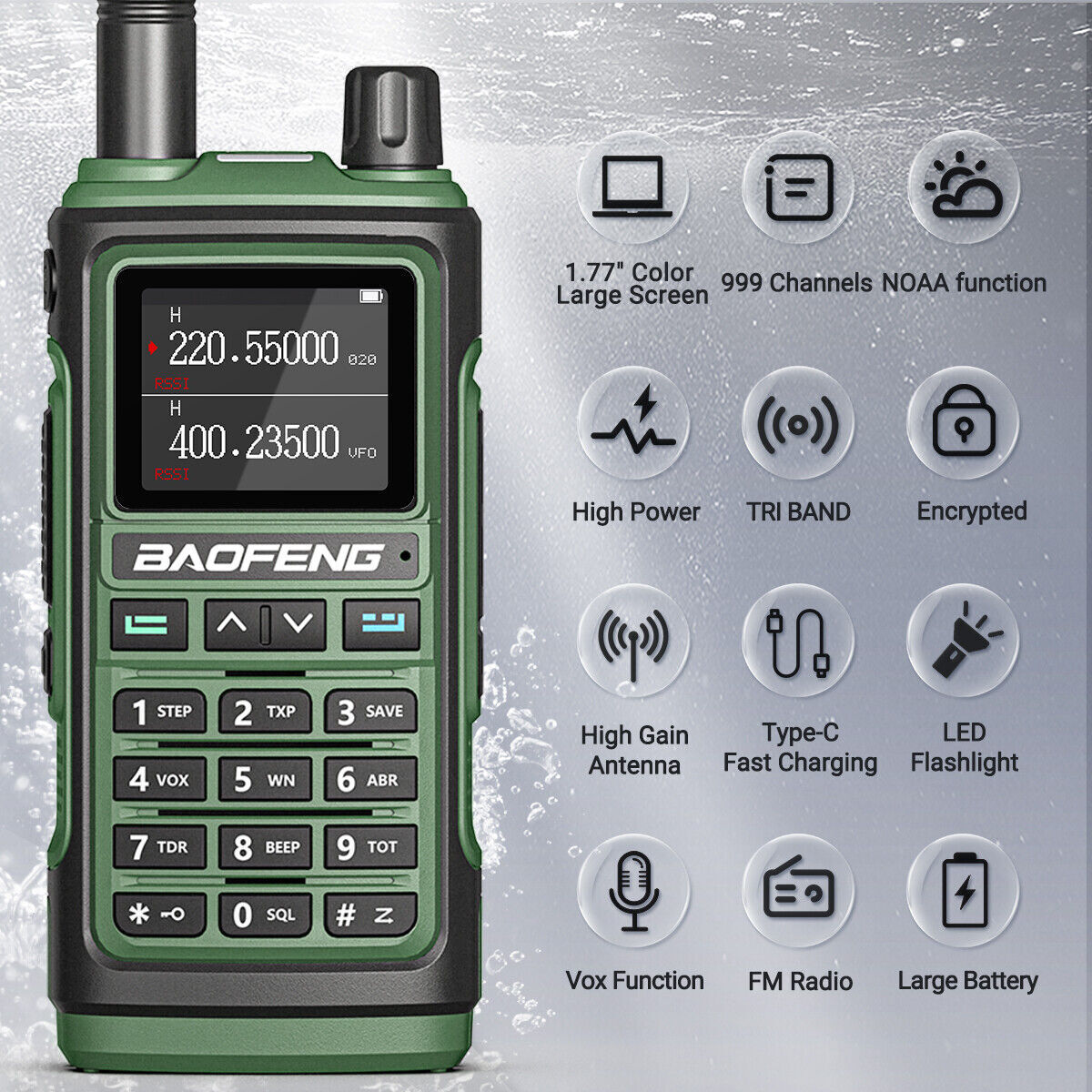 BaoFeng BF-18L FM Walkie Talkie Long Range Tri-Band NOAA Weather Two Way Radios