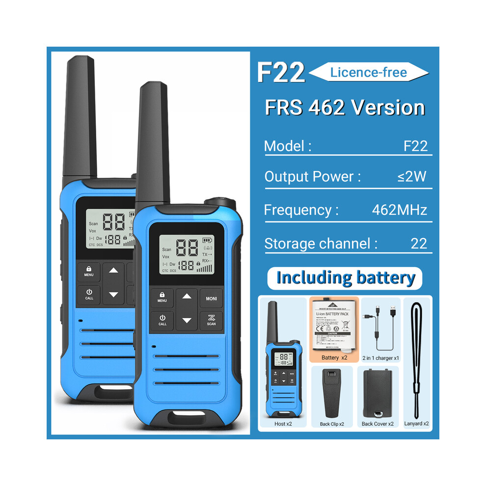 (FRS Add BAT-BL) 2PCS F22 Walkie Talkie PMR FRS Long Range Mini Rechargable Type-C Charger Portable Two Way Radio For