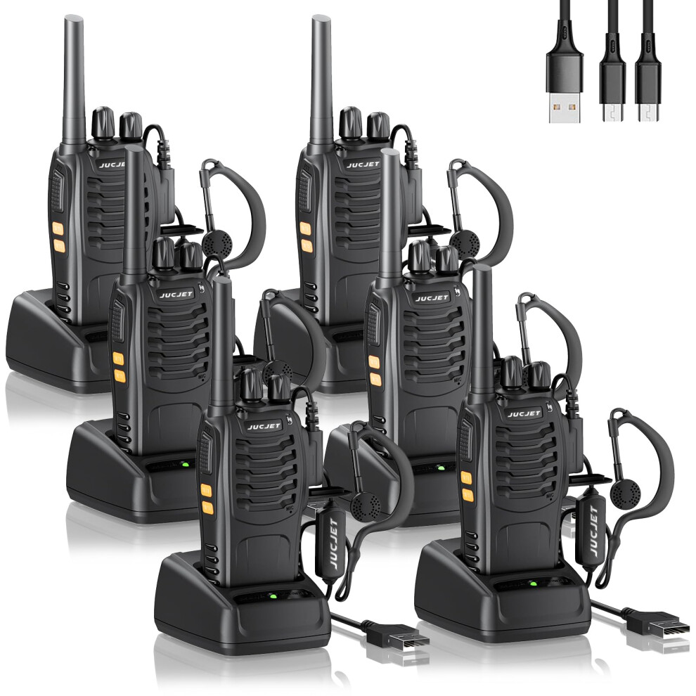 JUCJET 88E Walkie Talkie Long Range, Rechargeable 2 Way Radio for Adults with 16 Channels, VOX, USB Charging Base, PMR446 License-free, Handheld Walkie Talkie Rugged for Rescue, Security (6 Pcs)