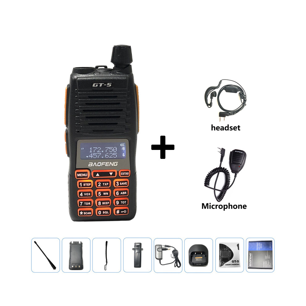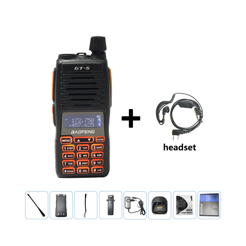 (Headset-Mic) 2021 BF GT-5 Walkie Talkie Long Range 10 KM Two Way Ham Radio Dual PTT hf Transceiver Portable Radios
