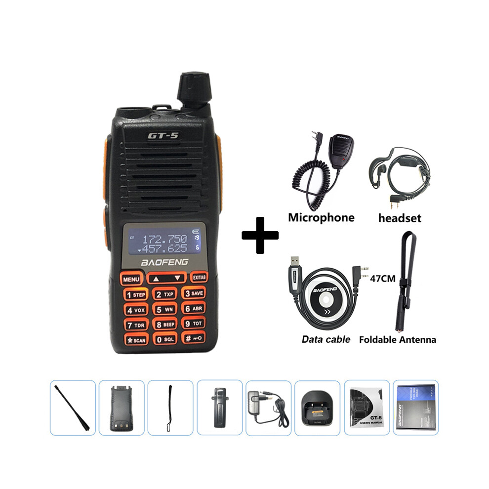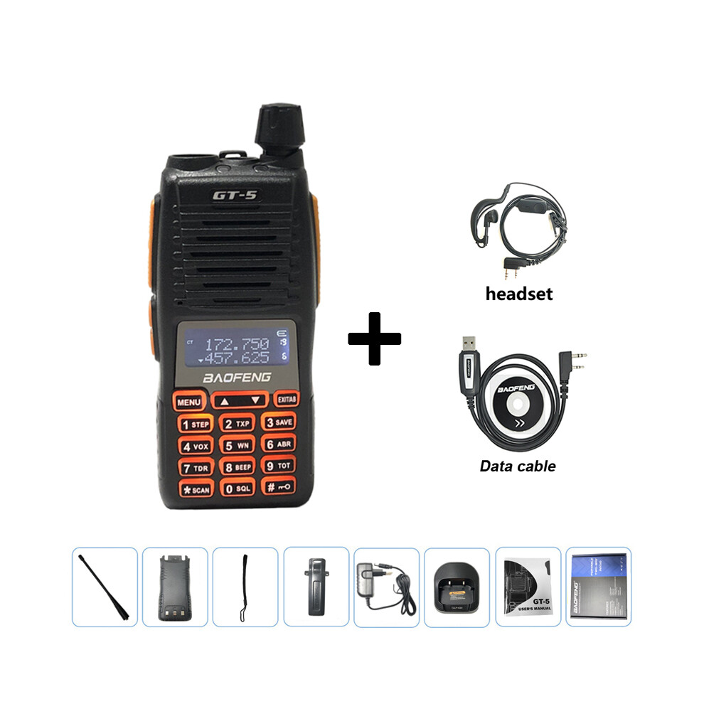 (Headset-Data Cable) 2021 BF GT-5 Walkie Talkie Long Range 10 KM Two Way Ham Radio Dual PTT hf Transceiver Portable Radios