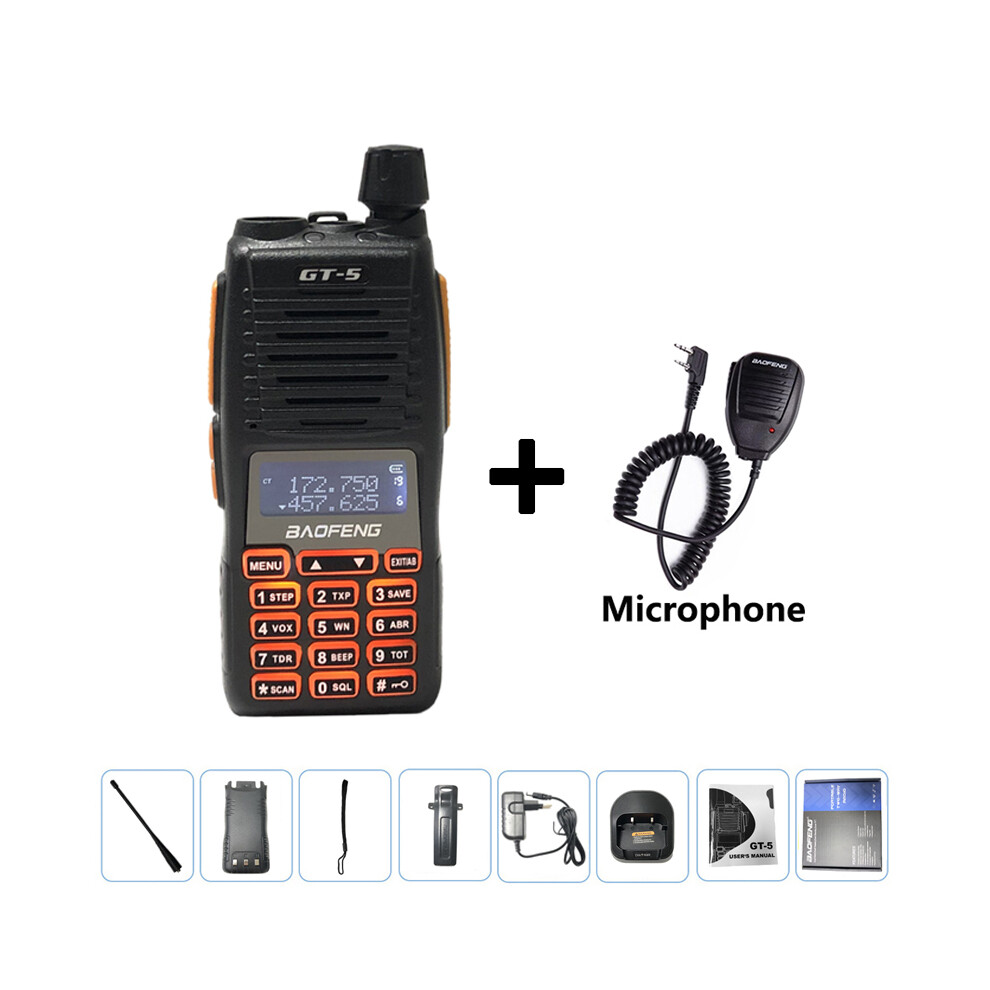 (Mic) 2021 BF GT-5 Walkie Talkie Long Range 10 KM Two Way Ham Radio Dual PTT hf Transceiver Portable Radios