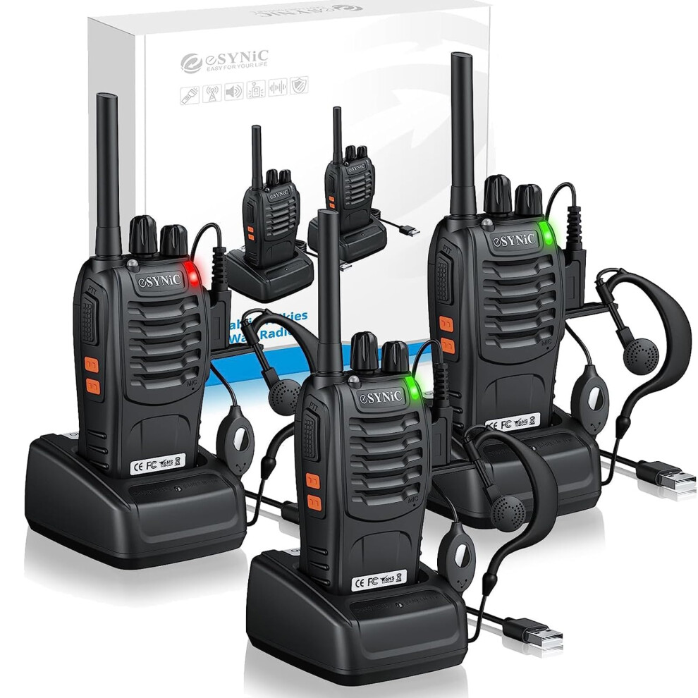 eSynic 3Pack Professional Walkie Talkies for Adults Rechargeable Walkie Talkie Long Range Radio Walky Talky for Kid Gift Support|VOX|16CH|LED
