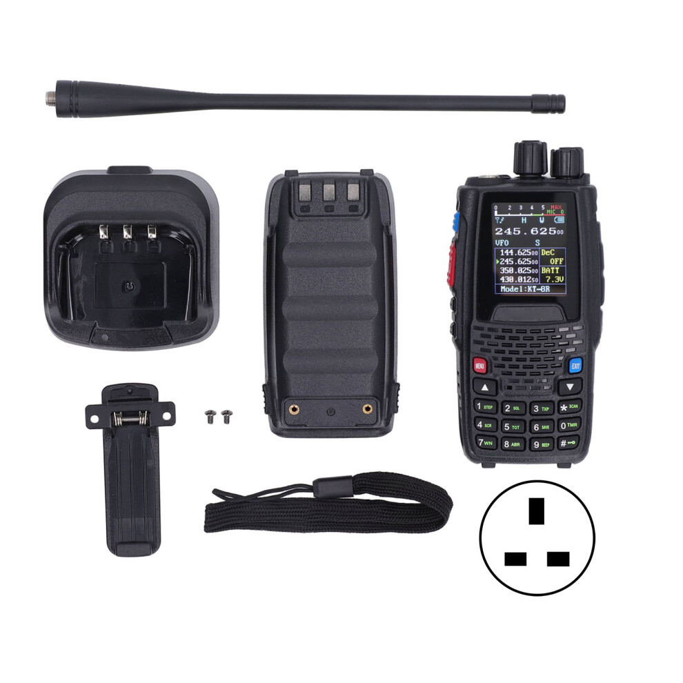 (UK Plug) 250 Channels 8W Walkie Talkie VHF UHF Portable Radio 2600mAh Battery Two Way Radio Big Screen FM Ham 136-174 400-480Mhz Instant Messaging