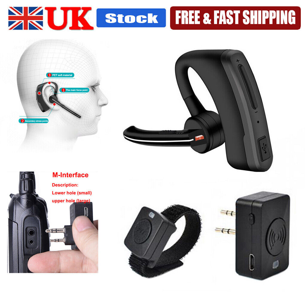 2Pin Plug K Head Headset Large PTT Button Walkie Talkie Earphone Radio Headph UK