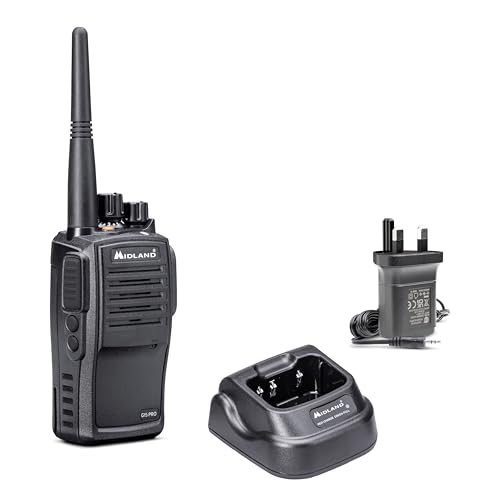 Midland - Walkie Talkie G9 PRO with UK Plug, IPX4 Waterproof Long Range Walkie Talkies, Airsoft & Outdoor, 2 Way Radio 105 Channels - 36 PMR446/69 LPD, 12Km Range, 23H Battery, Rechargeable Batteries