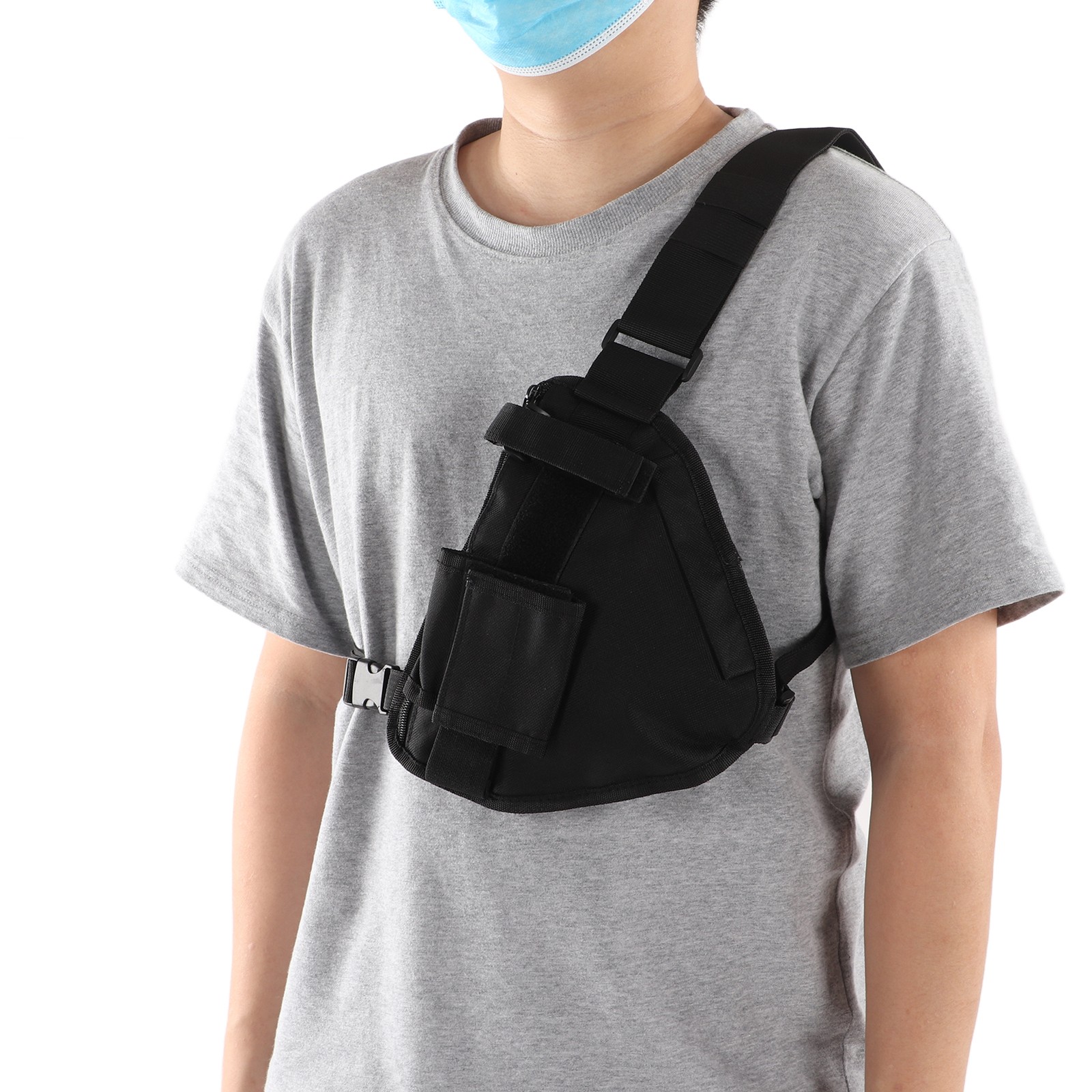 Multi Pocket Walkie Talkie Caller Triangle Unisex Waist Pack Vest Zipper Adju UK