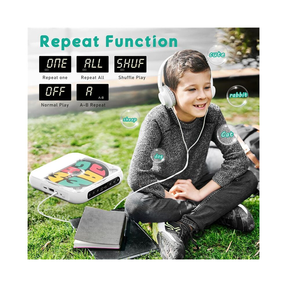 (white) Portable CD Player with Bluetooth, Rechargeable Walkman CD Player for Home, Built-in HiFi Speakers, Headphones, LCD Screen
