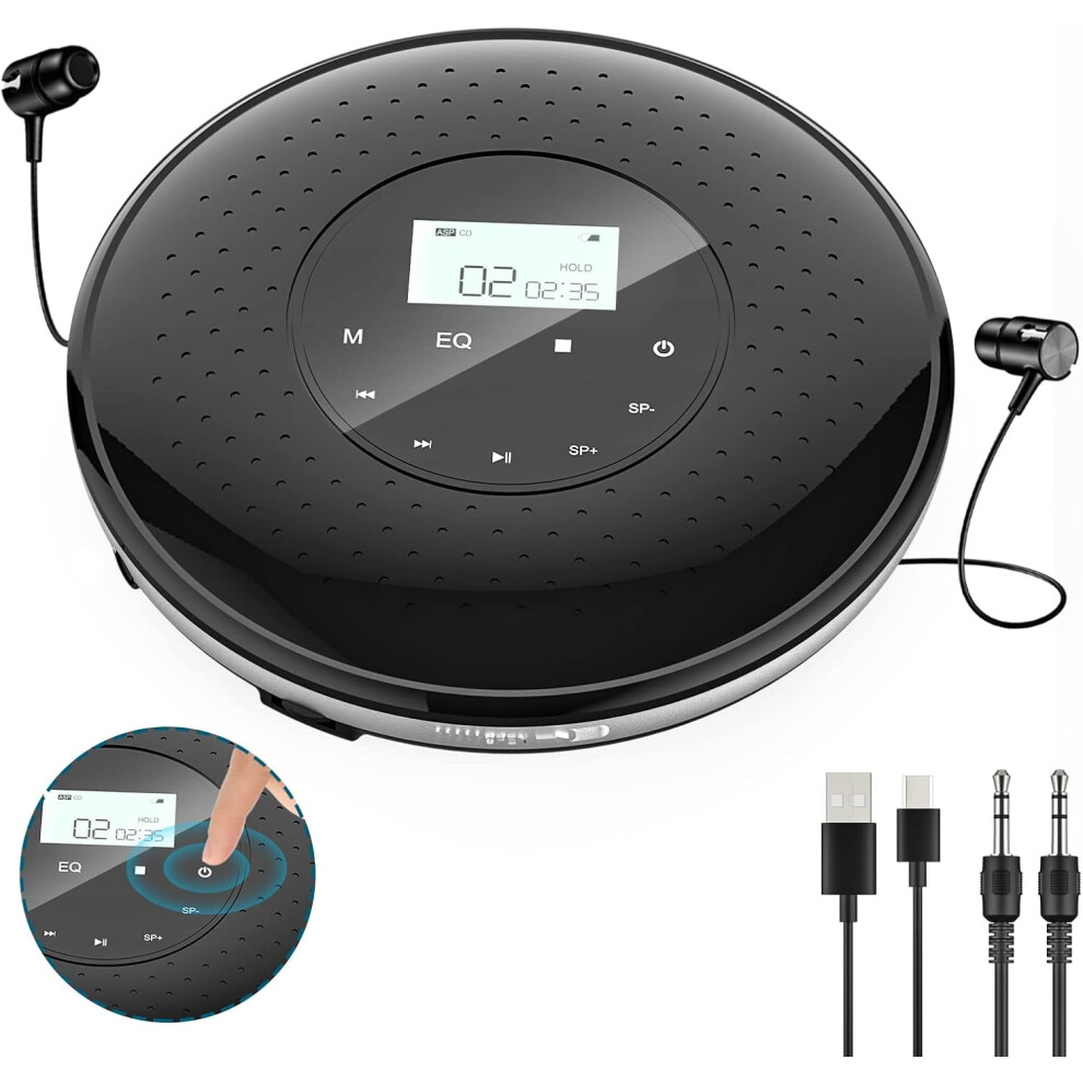 (black) Portable CD Player with Bluetooth, Rechargeable Walkman CD Player for Home, Built-in HiFi Speakers, Headphones, LCD Screen