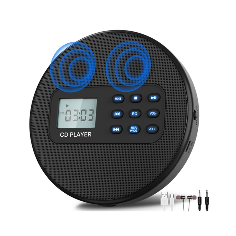 Portable Bluetooth CD Player Rechargeable Discman with Dual Speakers and Headphones Walkman Cd Player Mp3 Player Black