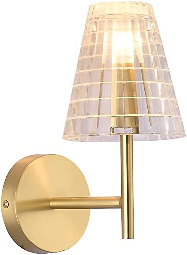 Lamp Metal Copper with Line Glass Shade Lamps Brass Socket, PostBedroom Bedside Wall Lights,Ceiling Light Fixture