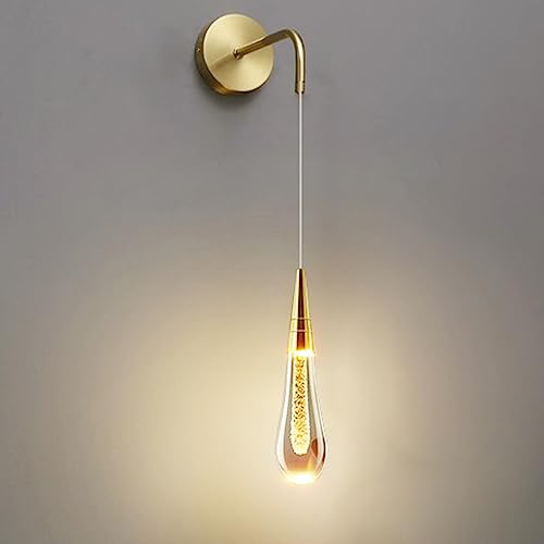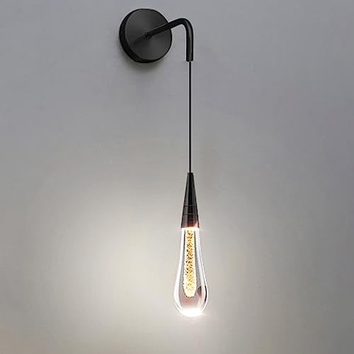 Creative Teardrop Wall Light, Single Head Aluminum Wall Pendant Lamp with Drop Shape Crystal Shade, Modern 5W LED Wall Sconces, Bedside Wall Lights, Simple Black/Gold Wall Lamps