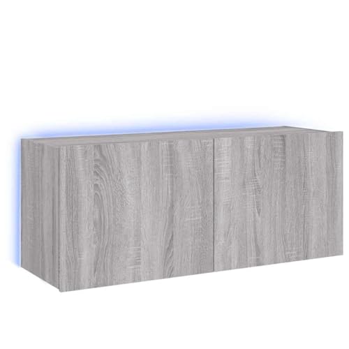KKgypkn Wall Mounted TV Cabinet with RGB LED Lights and Engineered Wood Media Cabinet Also Functions as Grey Floating TV Unit with Storage and Wall Mounted Bedside with Lights 80x35x41 cm