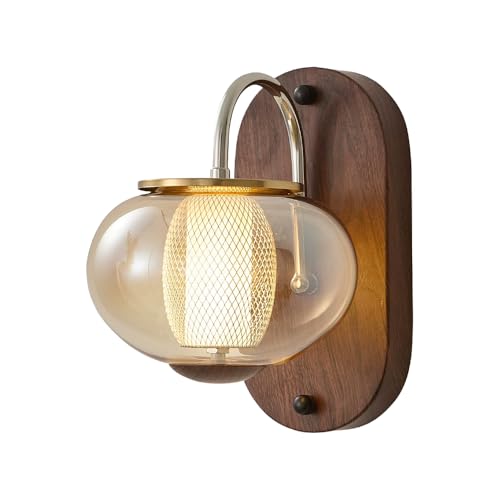 Vintage Industrial Wall Lamp, Water Transfer Printed Metal Wall Light with Wood Grain Finish, Mid-Century Glass Wall Sconce, Modern LED Wall Lamps-10W-3 Colors, Bedside Wall Lights