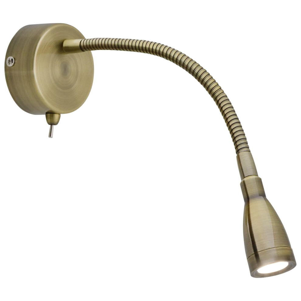Long Life Lamp Company LED Indoor Reading Wall Light 2W 6000K Antique Brass Wall Mounted Bedside Lights H3143