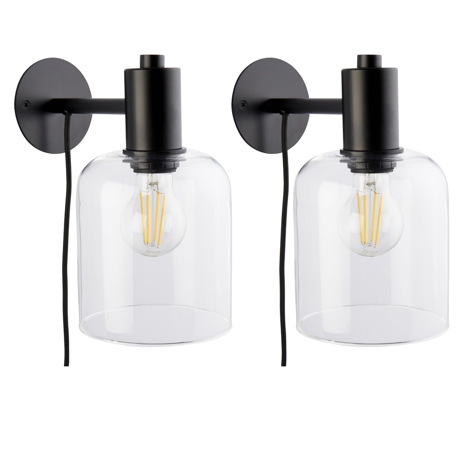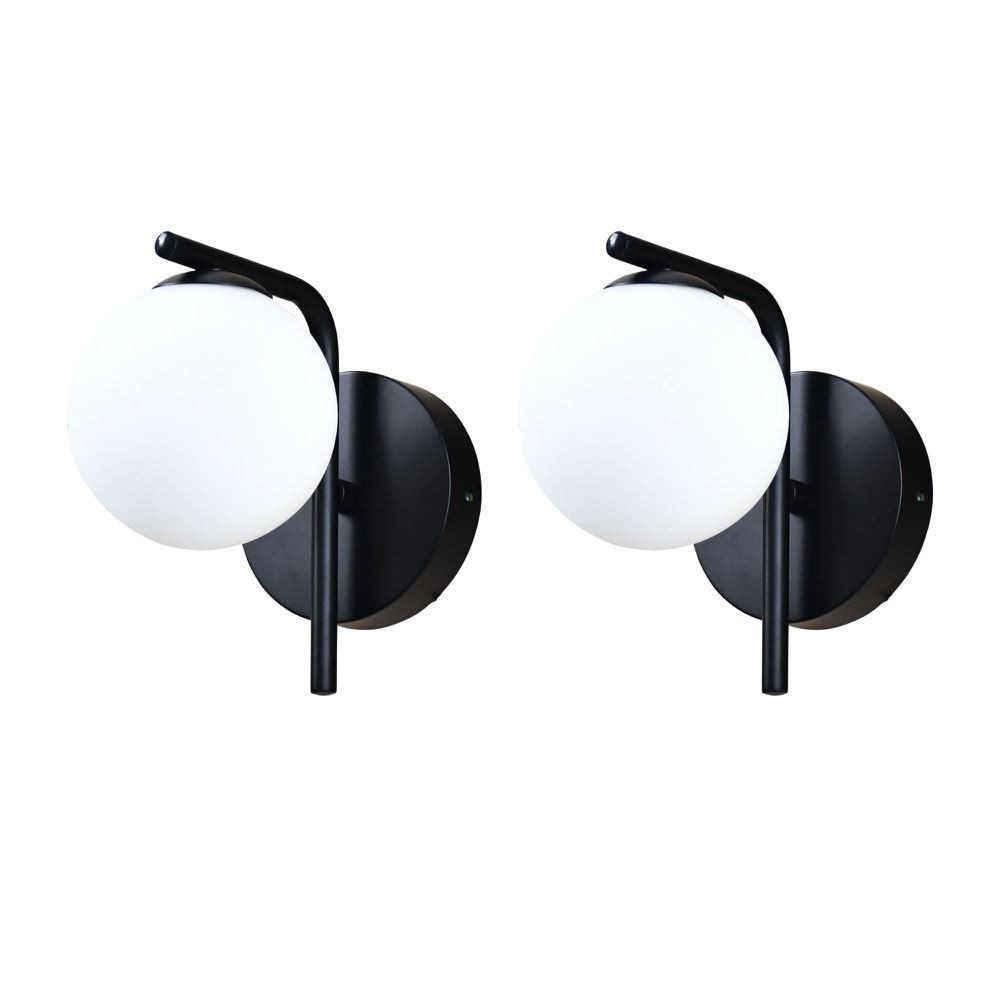 Set of 2 Modern Black Wall Lights Bedside Scone Lamps with Glass Globe