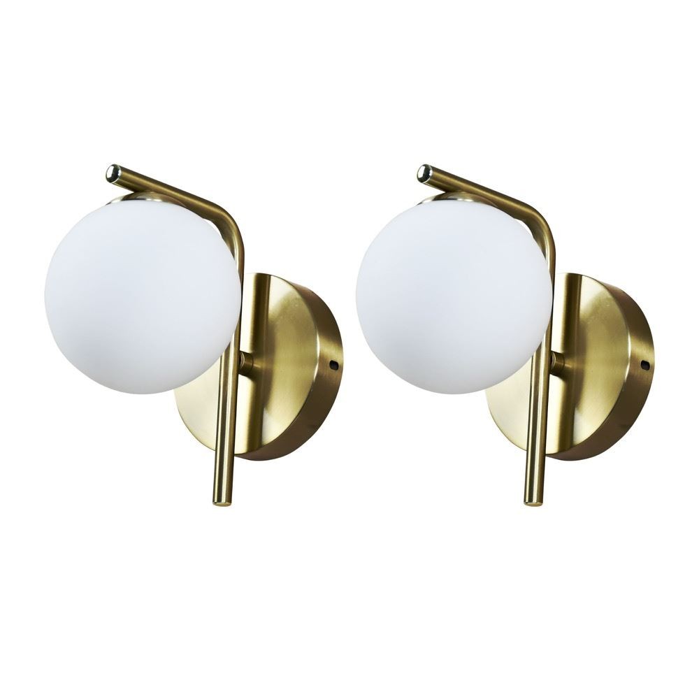 Set of 2 Modern Satin Brass Wall Lights Bedside Scone Lamps with Glass Globe