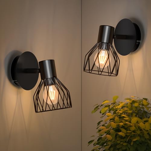 Kimjo Wall Lights for Bedrooms - Black Wall Lights for Living Room Rotatable - Wall Lamp Industrial Wall Lighting Fixtures E14 - Bedside Wall Lights Indoor Wall Sconce Lights 2 Pieces