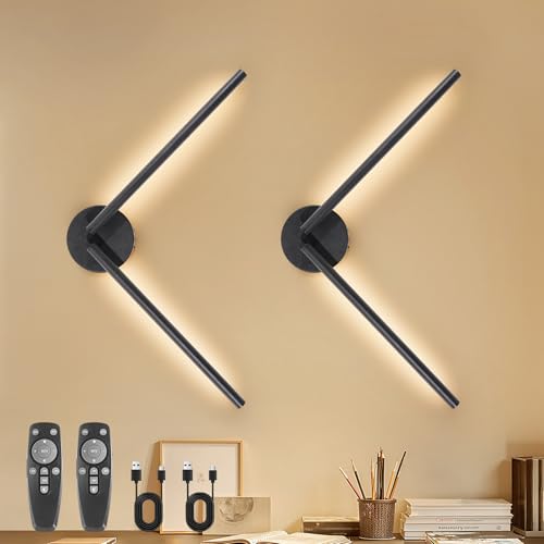 Kimjo 6600mAh Rechargeable Wall Lights, Dimmable Wall Lamp Wireless, 300° Rotation Modern Wall Sconces with Timer Function, USB Wall Mounted Bedside Lights with Remote Control, 2 Packs