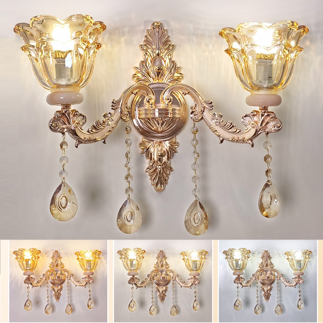 HWSY Wall Light Luxury Crystal Wall Sconces Gold Wall Lights Bedside Lamp Aisle Lighting Fixture For Bedroom Bathroom Hallway Staircase Living Room,E14*2 Interesting