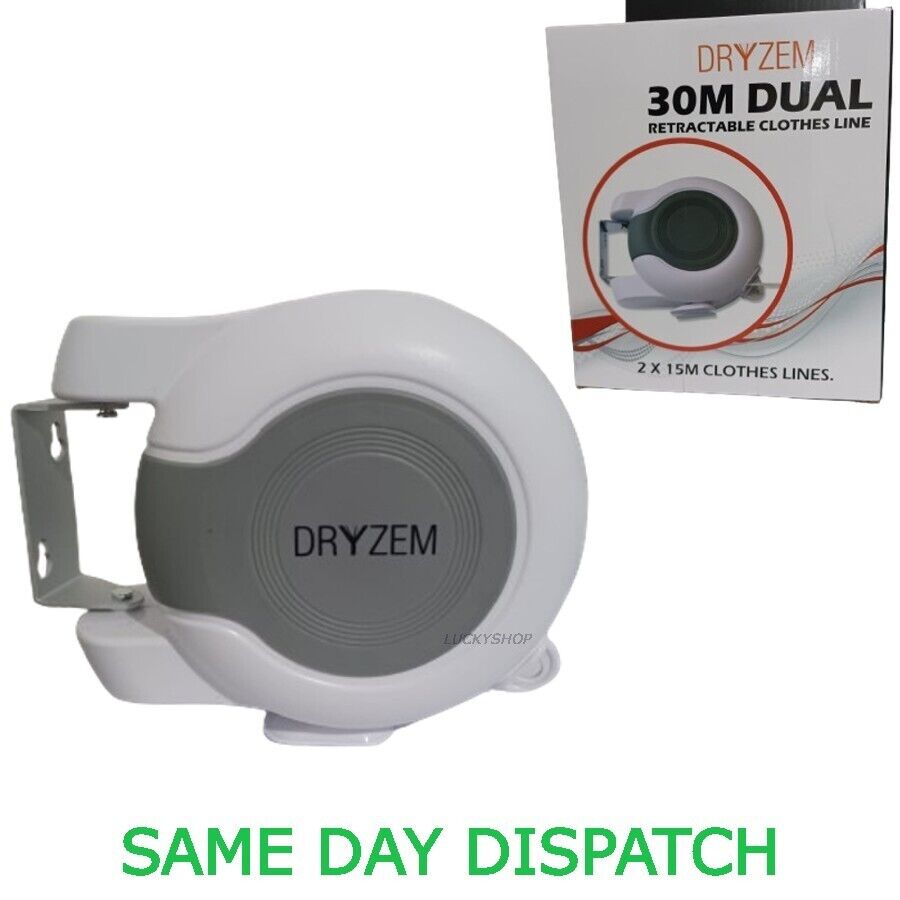 Double 30m Retractable Washing Line Wall Mounted Clothes Dryer Extendable 2x15m