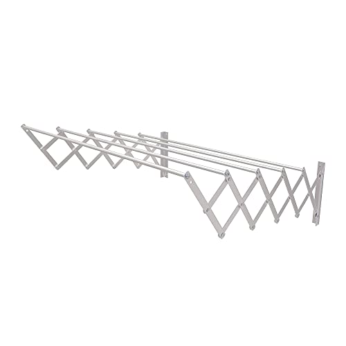 Amig - NIZA Extendable Wall Clothes Dryer - Made of high resistance aluminium - Stainless steel finish - Measures: 120x14x3cm - Foldable outdoor clothes rack