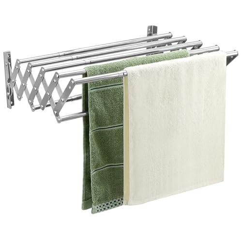 YOUDENOVA Foldable Clothes Airer Wall Mounted Clothes Rail Retractable Towel Holder Bathroom Towel Rack Extendable Clothes Drying Rack Indoor