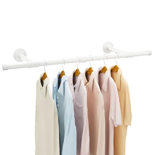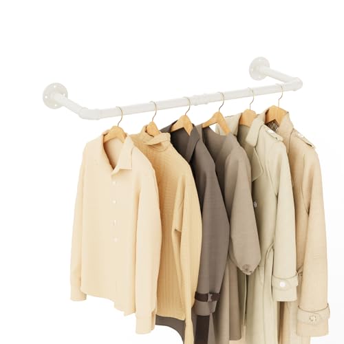 SMILOVII Wall Mounted Clothes Rail, Industrial 49cm Detachable Metal Garment Hanging Storage Rail - Heavy Duty for Home Shops and Closets