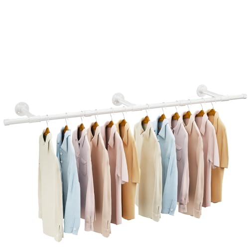 IBUYKE Industrial Pipe Clothing Rack, 156cm Wall Mounted Clothes Rack, Space-Saving Hanging Closet Rod, Heavy Duty Multi-Purpose Wall Mounted Clothes Rail for Closet and Laundry Room, White TYJ007W
