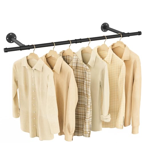 SMILOVII Wall Mounted Clothes Rail, Industrial Clothes Rail Wall Mounted, 92cm Walls Mounted Garment Rail Heavy Duty - Versatile Metal Hanging Rail for Home, Shops, and Closets
