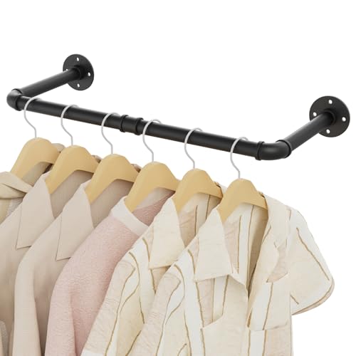 YheenLf Wall Mounted Clothes Rail, 64cm Industrial Pipe Garment Rack, Multi-Purpose Clothing Hanging Rod, Suitable for Home Bedroom for Coats, Bags,Scarves, Black, 1-Pack