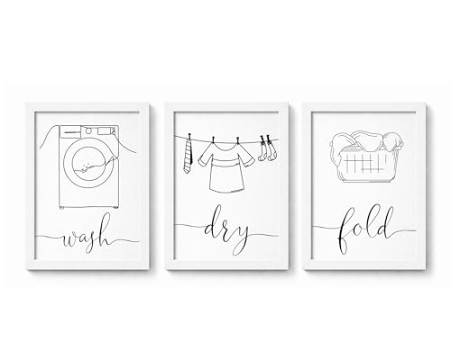 Set of 3 Laundry Room Prints, Wash Dry Fold Wall Art Prints, Unframed Washing Artwork, Utility Room Décor - A5 A4 A3 Black And White Line Wall Art