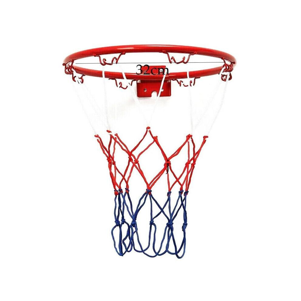 32cm Basketball Hoop Netting Metal Rim Hanging Basket Basket-Ball Wall Rim with Screws Indoor Outdoor Sport