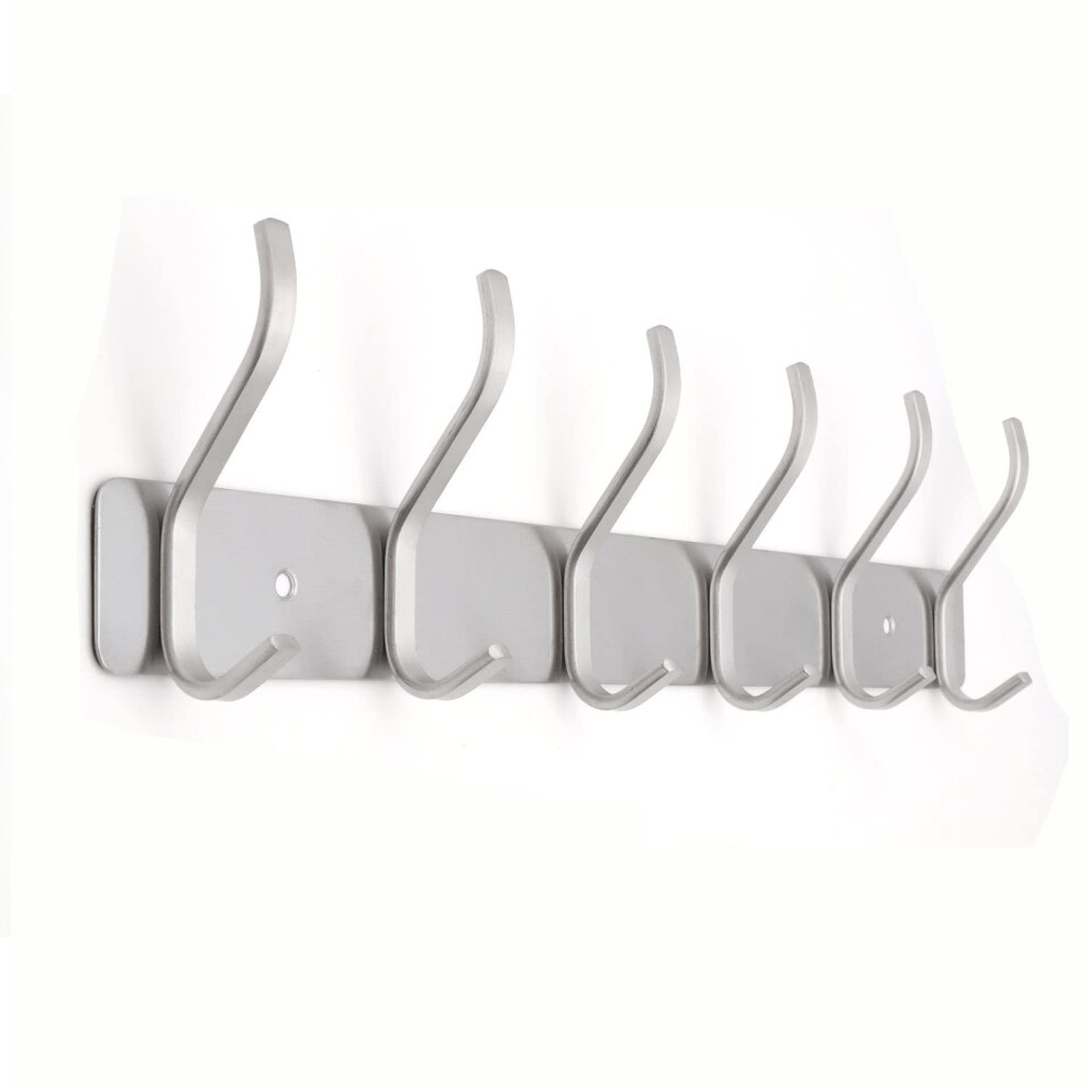 Wall Mounted Coat Hook Rack, Heavy Duty Metal Stainless Steel Wall Hooks for Hanging Coats Hats Towels Robes Keys, Multi Function Entryway Bathroom Or