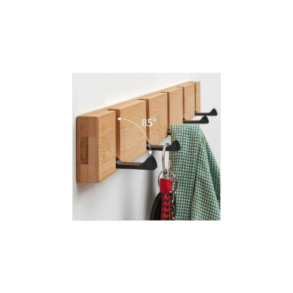 Adjustable Wall Hooks with Fold-Down Mechanism, Heavy Duty Wall Hooks for Hanging Coats and Towels, Stylish Wall Accent Piece with Natural Wood Finish
