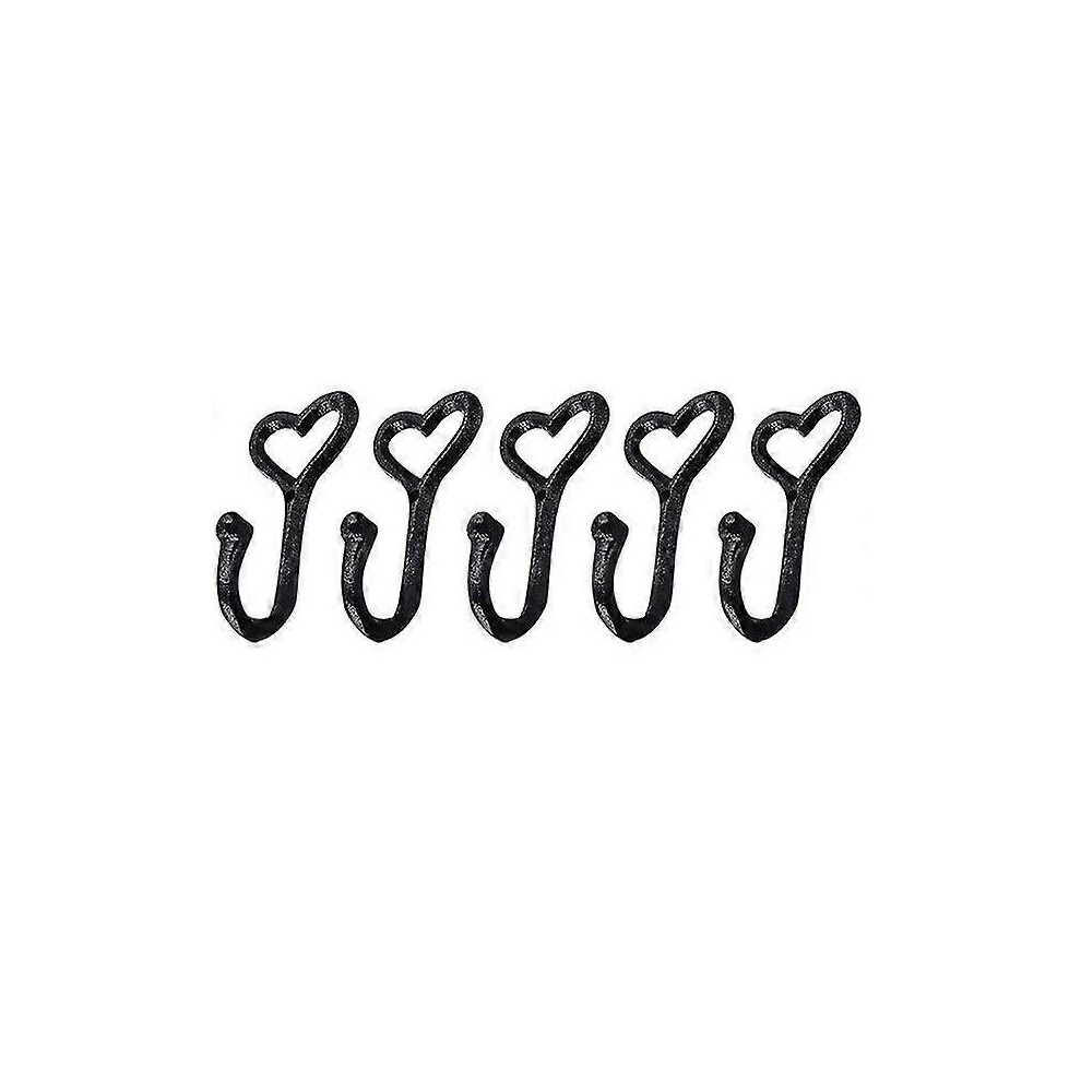 Heavy Duty Coat Hooks, 5pcs Cast Iron Love Heart Shape Wall Hooks for Hanging Coats, Black No Rust Hooks for Scarf, Bag, Towel, Key, Cap, Cup, Hat